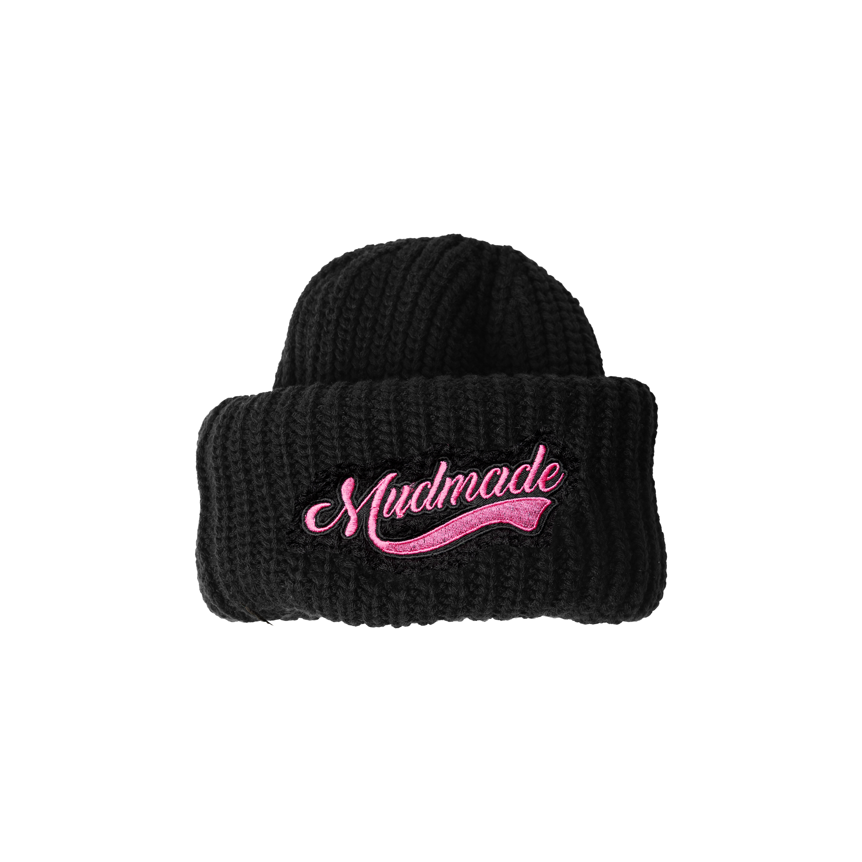 Heavy Double Cuff Knit Script Beanie (Hot Pink)