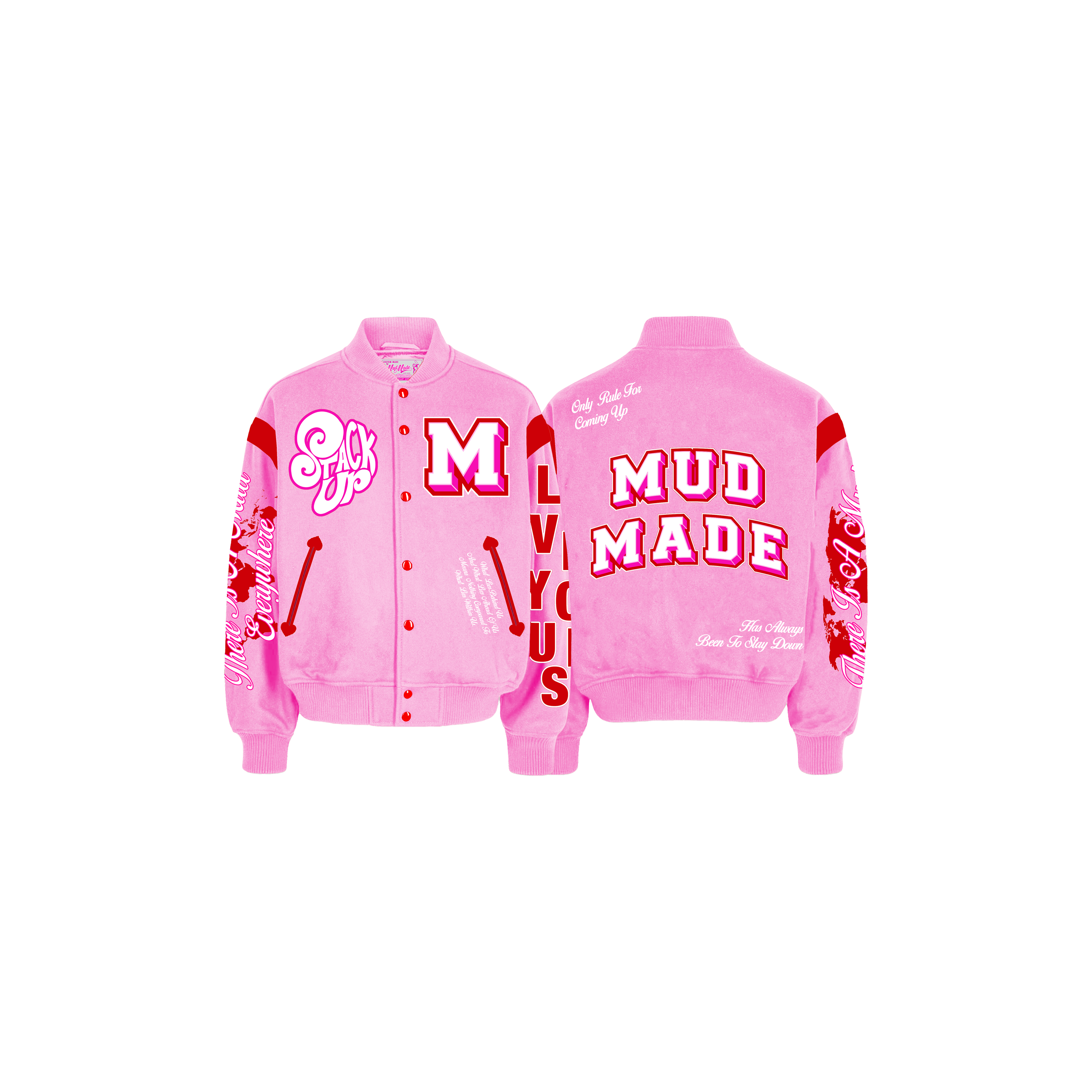 (PRE - ORDER) Mud Made Youth Stack Up Varsity Jacket (Valentine's Day Pink)